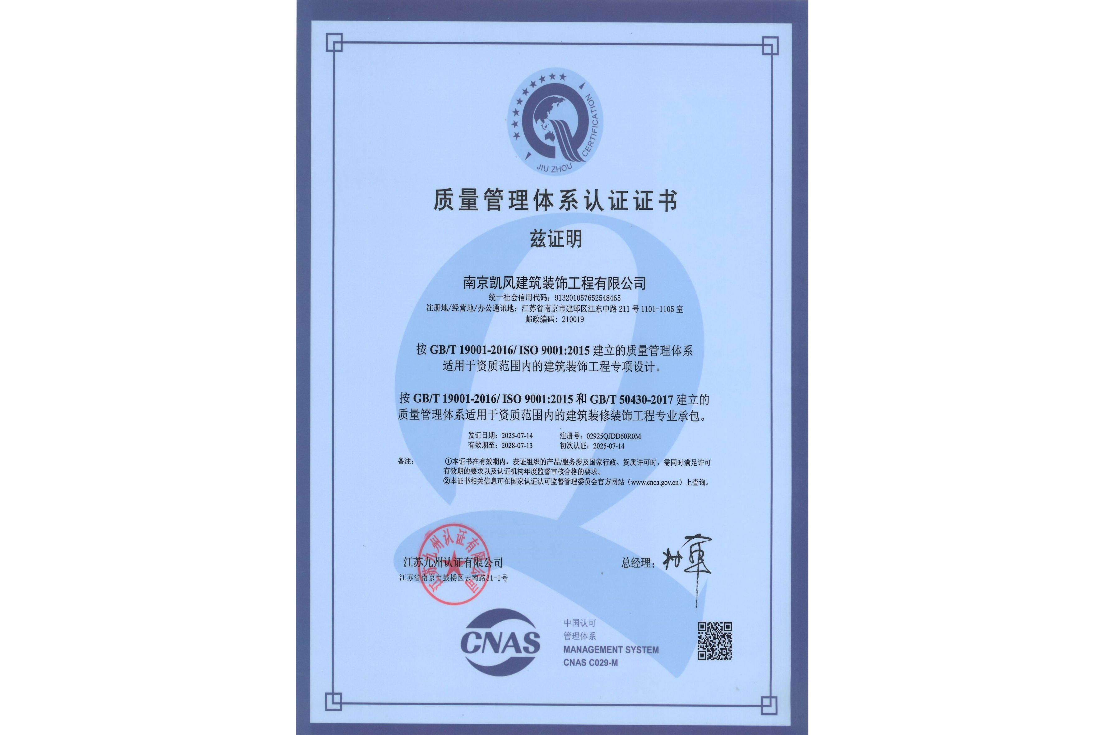 工程设计建筑装饰工程专项甲级