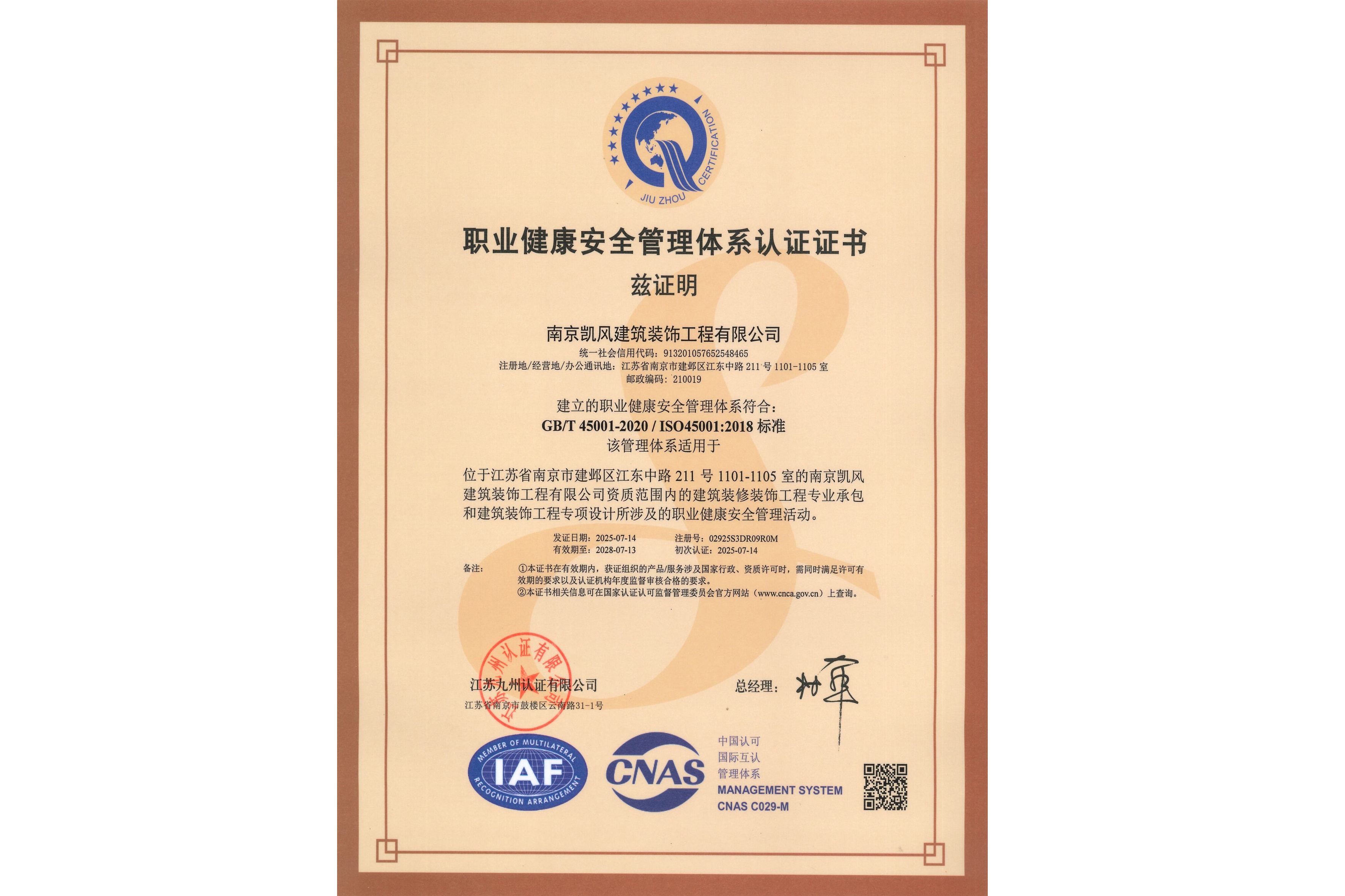 职业健康安全管理体系认证