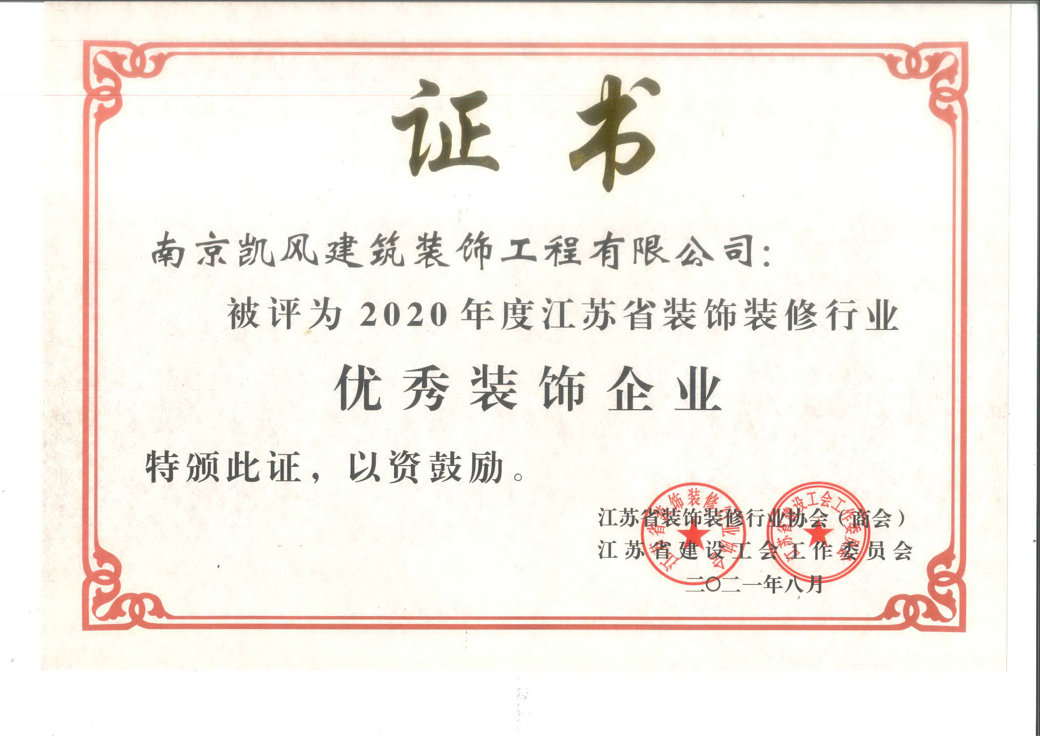 2021年度江苏省优秀装饰企业