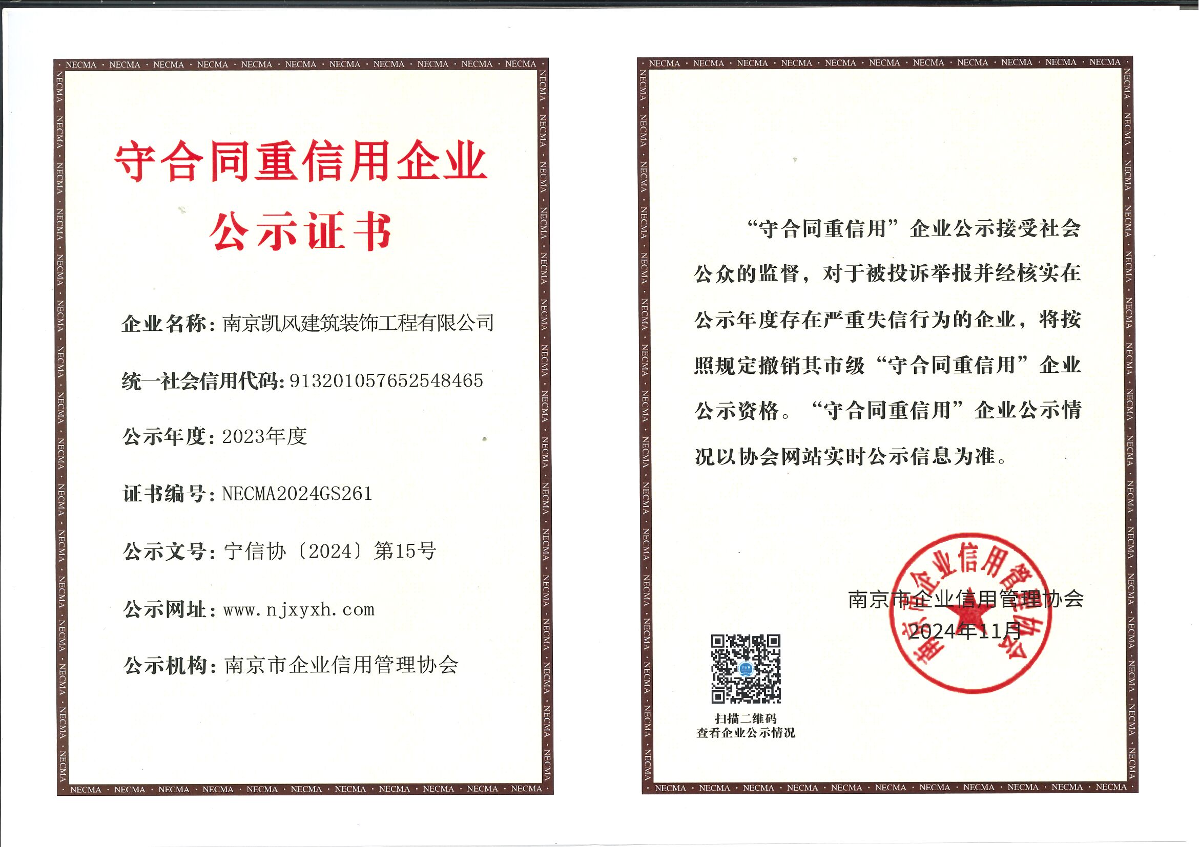 南京市守合同重信用企业