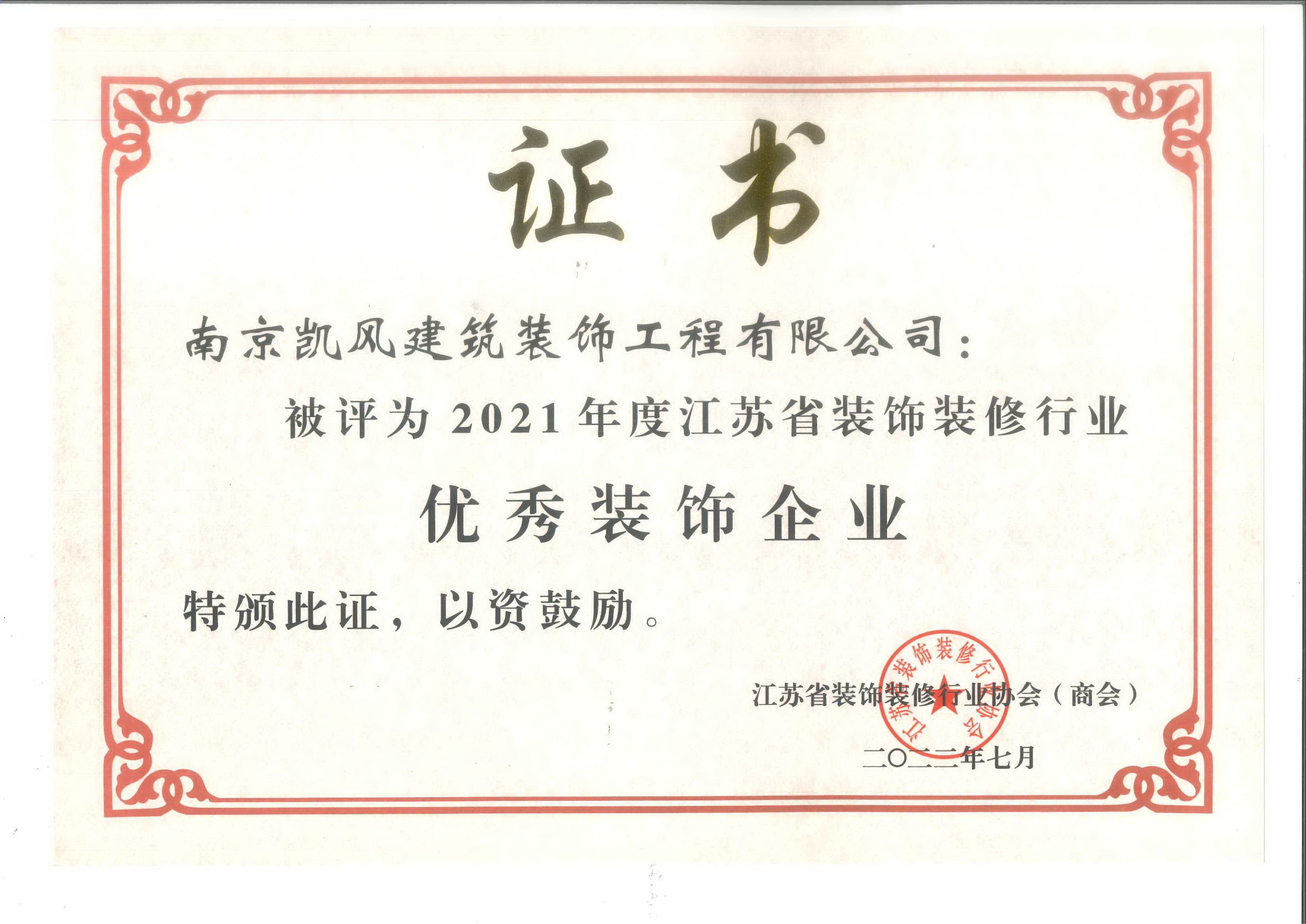 2022年度江苏省优秀装饰企业